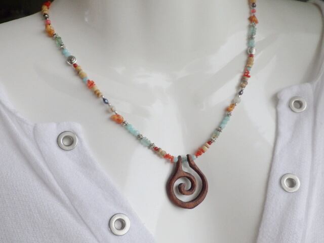 *sv925* KORU Wooden Spiral Boho Necklace コルのハワイアンネックレス