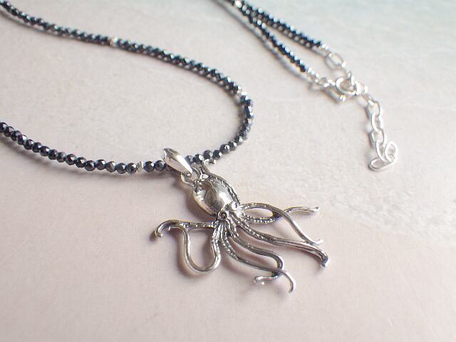 タコ好きにはたまらないシルバー925製オクトパスの総天然石ネックレス