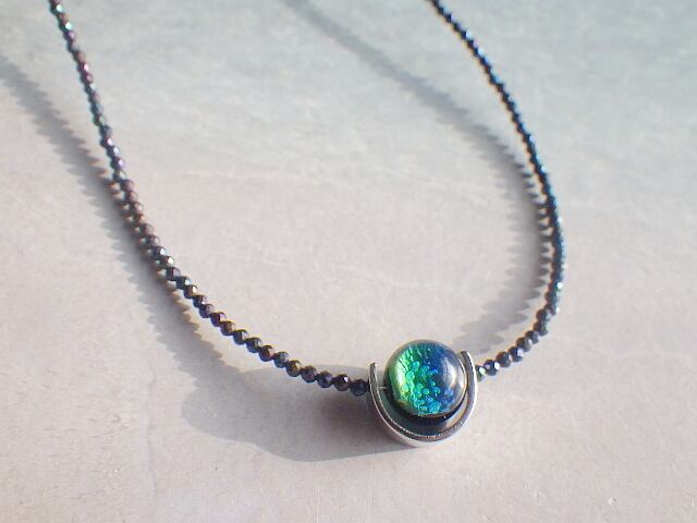 *sv925*Kerama Sea Blue オーシャンブルーホタルガラスのブラックスピネルネックレス