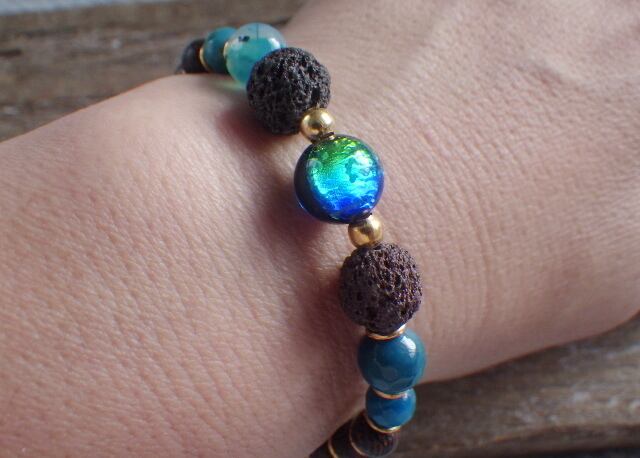 Kerama Ocean Blue* Lava Stone Diffuser Bracelet☆アロマブレスレット