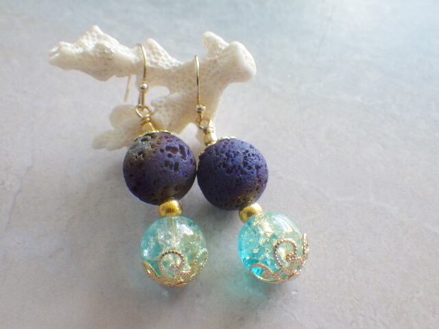 溶岩石であるラヴァビーズを使用したアロマ/ディフューザーピアスです
