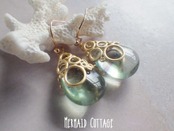 透き通るグリーンのスムースカットの大粒フローライトドロップを シーバブル(海の泡)のような繊細なフィリグリーで包み込みました