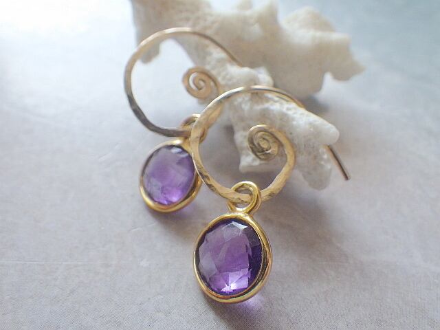*14kgf*Amethyst Swirl Earrings アメジストの 渦巻きピアス☆槌目