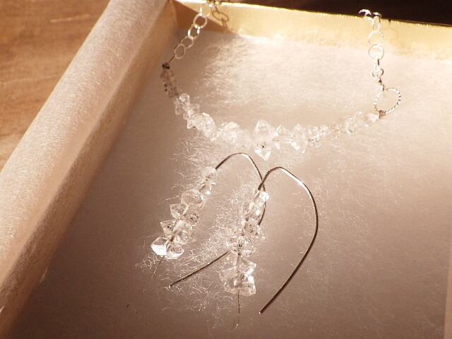氷粒が連なるようなハーキマークウォーツのピアスのとってもお得なセットです♡