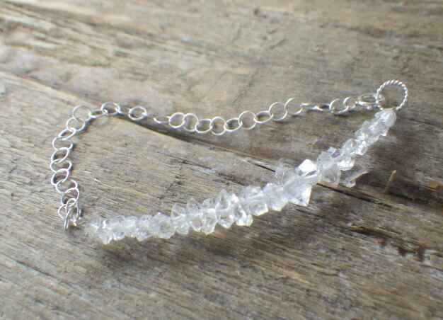 氷の欠片のような美しいハーキマークウォーツと泡のようなシルバーチェーンのハーフ&ハーフブレスレット