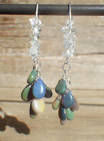 *sv925*Lagoon Opal Bunch Herkimer Hook エチオピア産ブラックオパールピアス