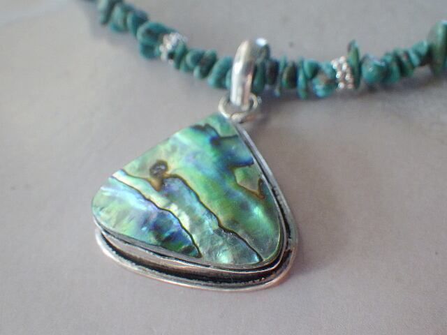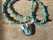 とーっても美しい玉虫色に輝くアバロン(アワビ貝)と天然ターコイズの海のステートメントネックレスです