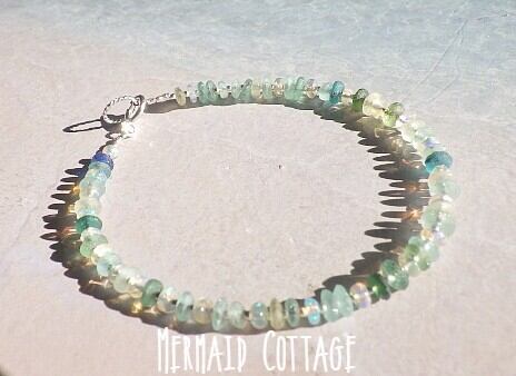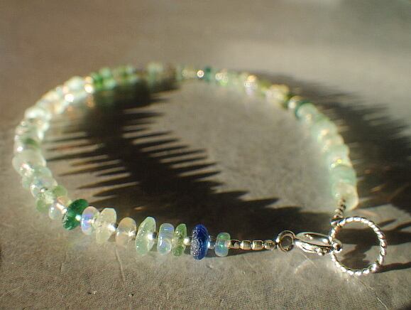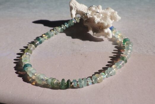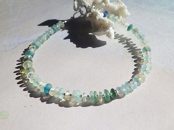 とても美しいプレシャスオパールをふんだんに散りばめ、カレンシルバーと小さなシーグラスなような
