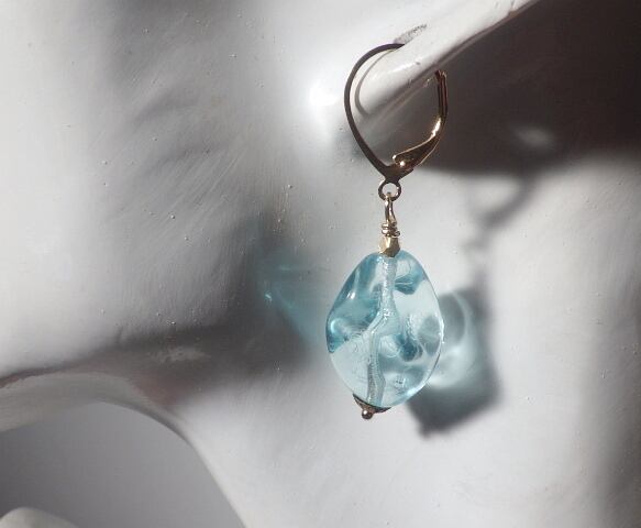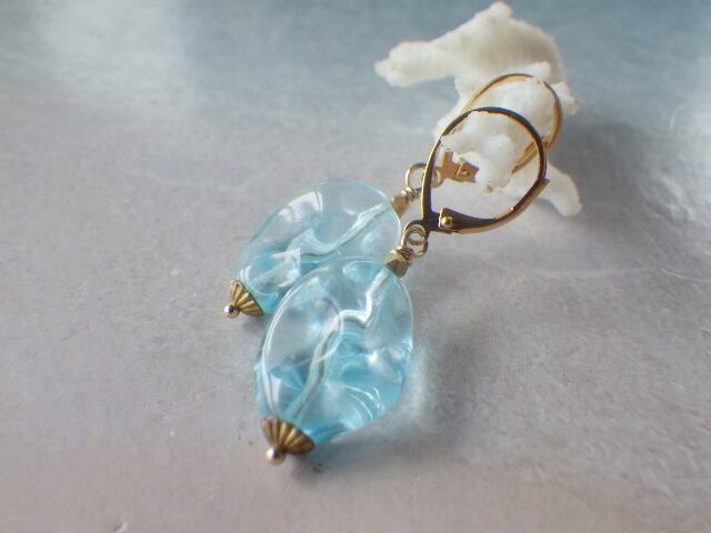 海の波間のようなガラスの美しさを活かすようシンプルに一粒だけのピアスにしました