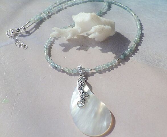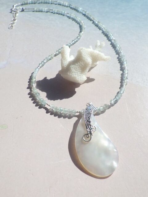 *sv925*Mermaid Tail Drop II *マザーオブパールの人魚の尻尾アパタイトネックレス