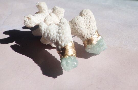 浜辺で拾った珊瑚の欠片に「海の水」を意味するアクアマリンの原石をあわせ