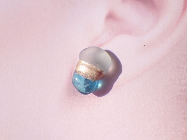 海を切りとったようなとても綺麗なブルーに人魚の涙と言われるシーグラスをあわせ、小ぶりながら耳朶に海!の存在感☆