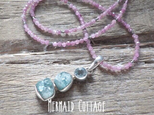繊細なカットが施されたトルマリンはキラキラとしてとてもビューティフル!アパタイトトップのブルーとトルマリンのピンク色のコントラストが素敵です。天然石とシルバー925のみの高級感あるネックレスは金属アレルギーの方に大好評です。プラス4cmのアジャスターをお付けし長さ調整も可能です