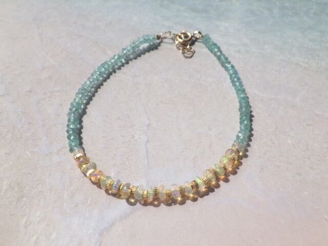 14kgf*Opal & Sea Bracelet プレシャスオパール&アパタイト☆アジャスター