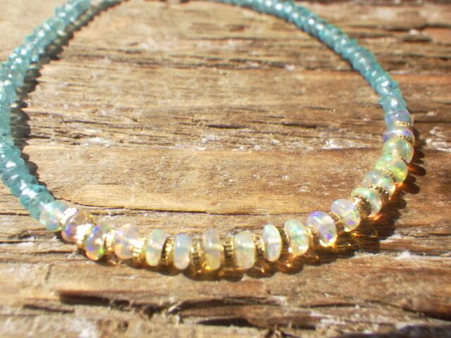 そんなプレシャスオパールをアパタイトの間にふんだんに散りばめたとても美しいブレスレットです