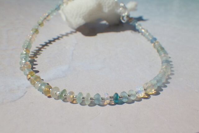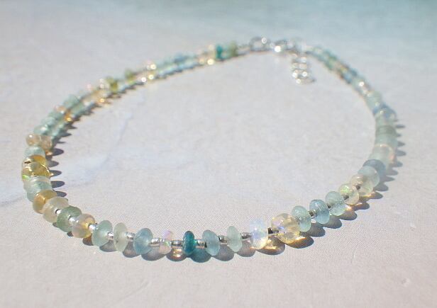 とても美しいプレシャスオパールをふんだんに散りばめ、カレンシルバーと小さなシーグラスなような