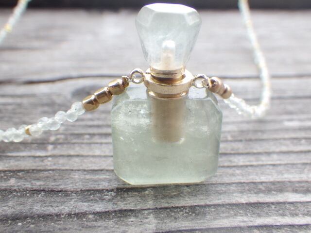 その正体は中にアロマオイルや香水を入れられる香水瓶型のフローライトのアロマボトルです