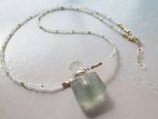 同色のプレナイトにゴールドビーズを散りばめて総天然石のスペシャルネックレスにしました