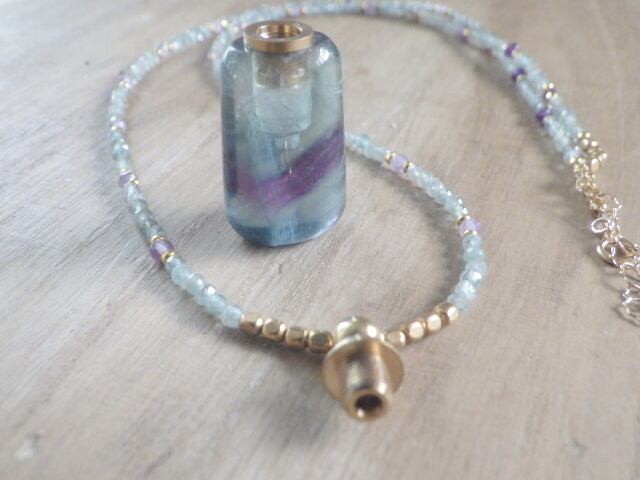*14kgf*Twilite フローライトの香水瓶アロマネックレス☆天然石アロマボトル☆アパタイト