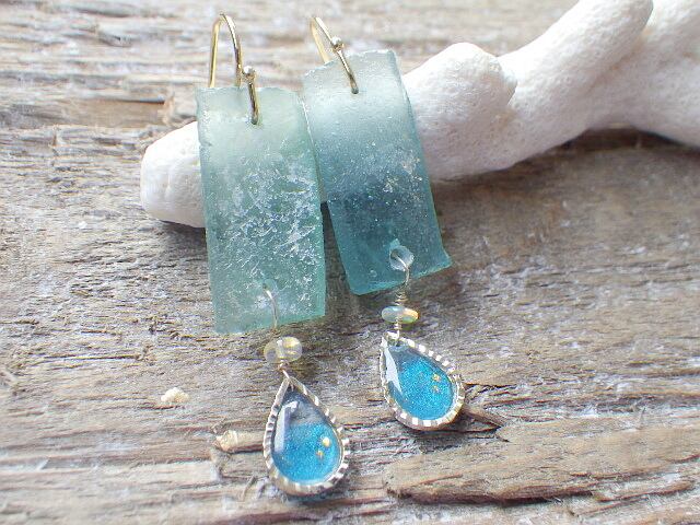 ローマングラスに小さなエチオピアオパールと、しずくのモチーフを合わせました