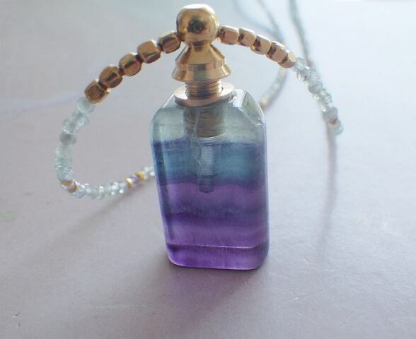 *14kgf*Twilite フローライトの香水瓶アロマネックレス☆天然石アロマボトル☆アパタイト