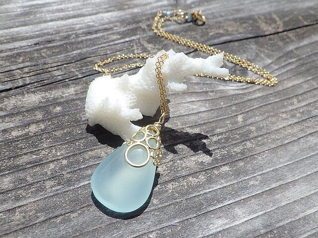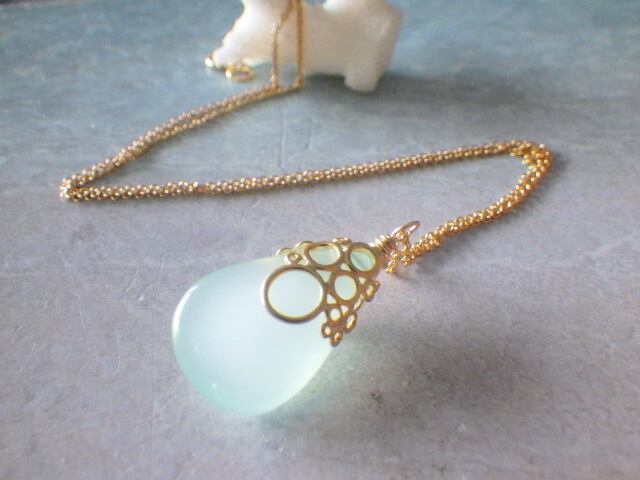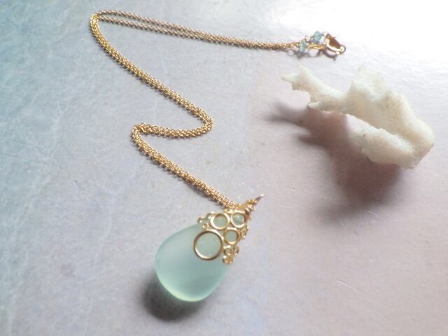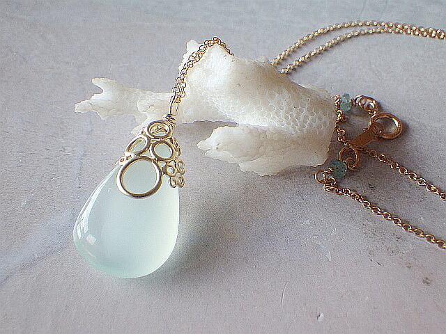 ⭐️️再販⭐️️海の泡カルセドニードロップのネックレス 14Kgf