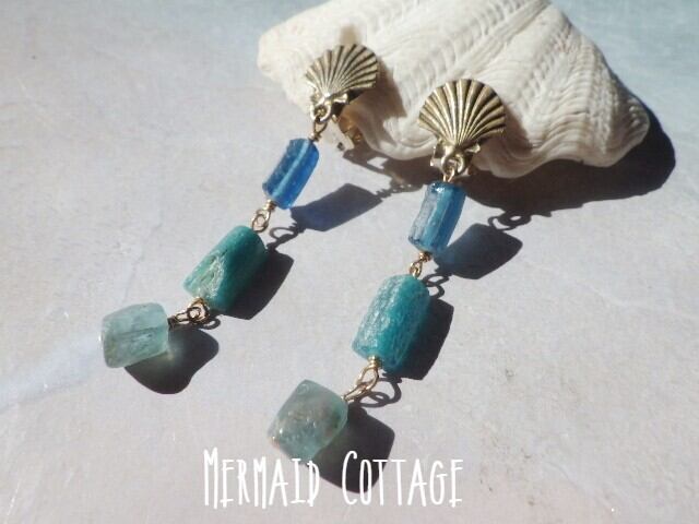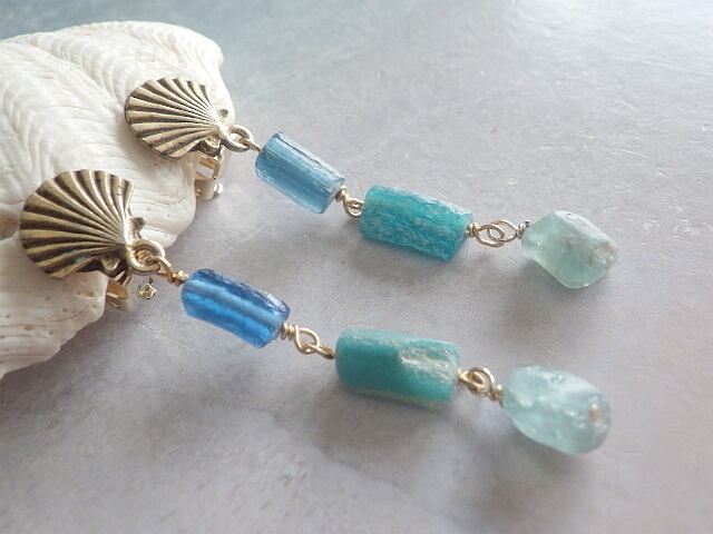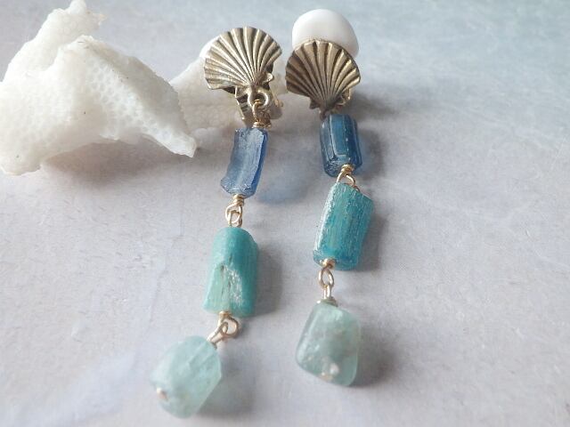 地中海ブルーのローマングラス マーメイドイヤリング Ocean Ombre Romanglass