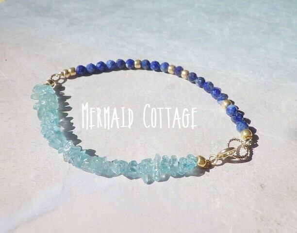 ブレスレットの半分に、海岸側の浅瀬の透き通るターコイズブブルーのようなお色のアパタイトを連ね
