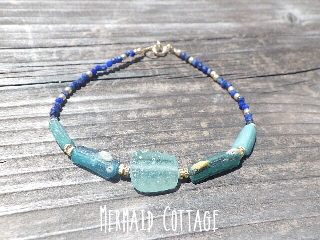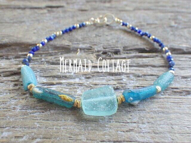*14kgf*mediterranean sea blue 地中海ブルーローマングラスのラピスラズリブレスレット