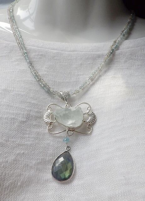 *sv925*Ocean Goddess 海の女神の首飾り☆アクアマリン原石&ラブラドライト
