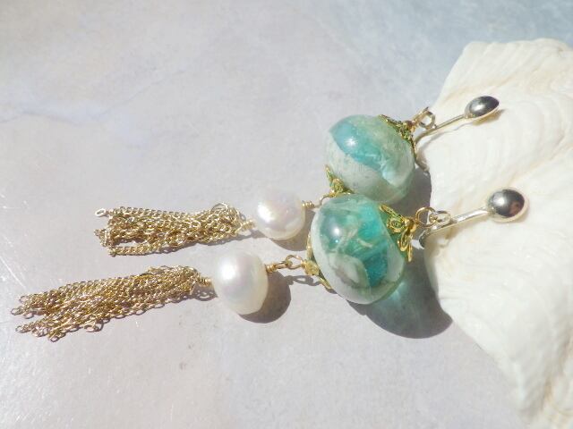 Jellyfish and Water Pearl ピアス/イヤリング☆蓄光タイプ