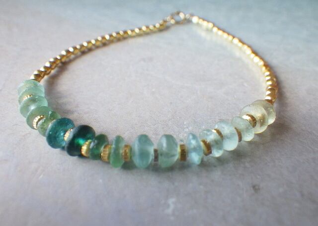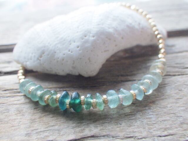 海を思わせるローマングラスのビーチブレスレットは如何でしょう