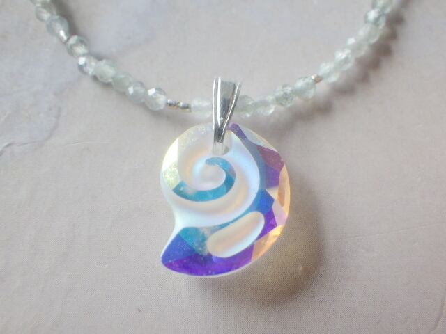 ぐるぐるっと渦まいたアンモナイトのスワロフスキーがとっても可愛いアパタイトの海!なネックレスです