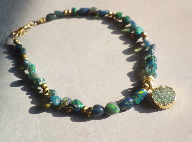 海を思わせるお色の美しい遊色効果を放つプレシャスオパールのブレスレットです