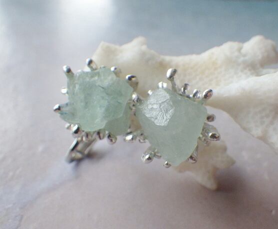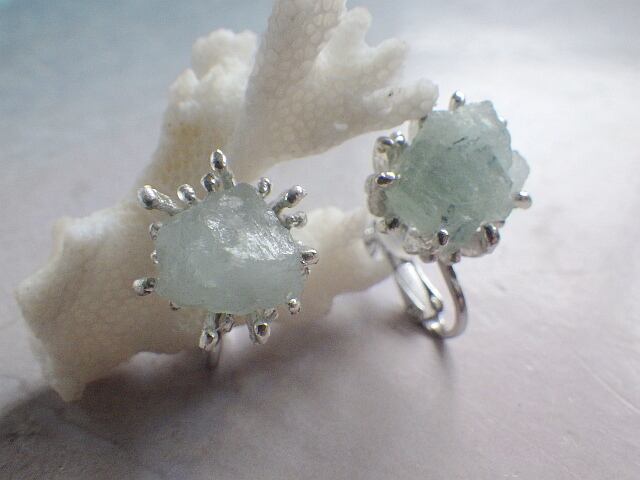 Raw Aquamarine Coral Earrings アクアマリン原石 ラフロックイヤリング