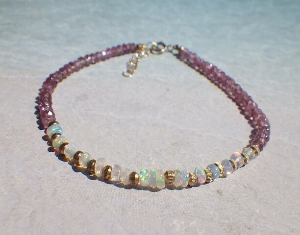 思わず見とれてしまう美しいプレシャスオパールをトルマリンの間にふんだんに散りばめました。どちらも10月の誕生石なので10月生まれの方に嬉しい組み合わせです♪
