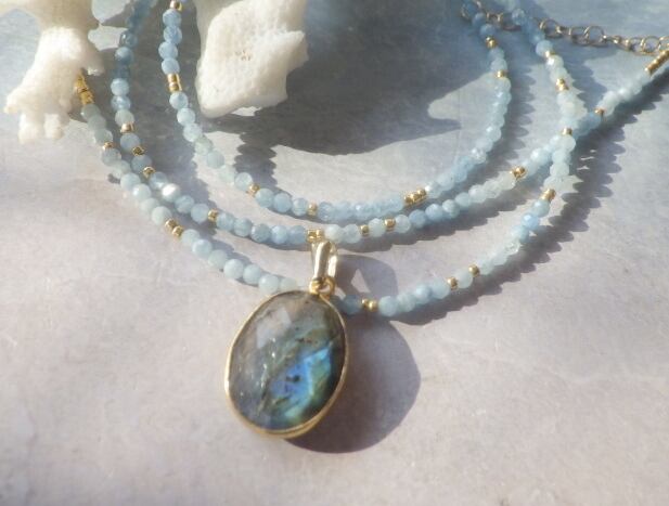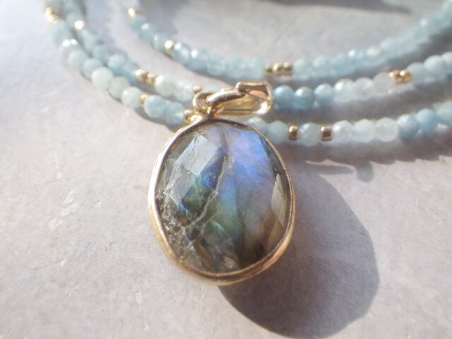 Big Labradorite Aquamarine Necklace☆ラボラドライト☆3WAY