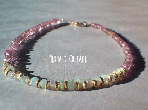 美しい夕日色のルベライトと幸せを呼ぶといわれる愛の石、オパールが輝く愛に満ちた♡ブレスレットです