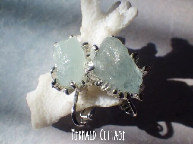再販☆Raw Aquamarine Coral Earrings アクアマリン原石 ラフロックイヤリング