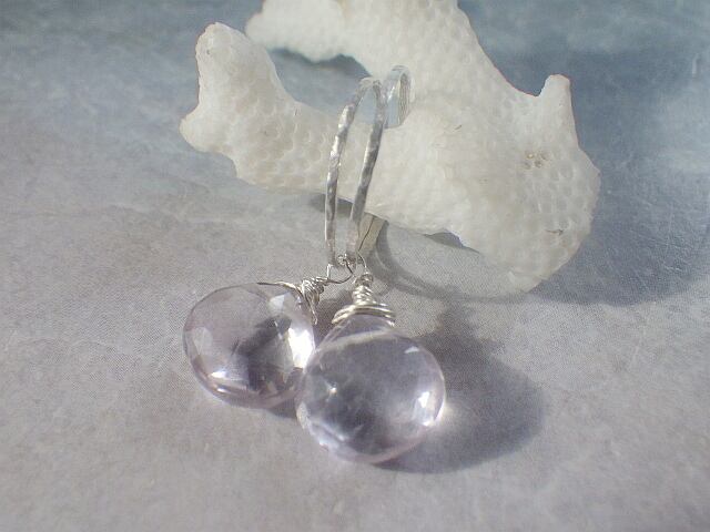 *sv925*ミスティッククウォーツの揺れるシルバーフープピアス☆槌目ハンマー打ち
