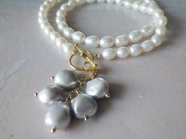 丸みを帯びた淡いシルバーグレーの大きなバロックパールの房はまるで海の恵みの葡萄・・