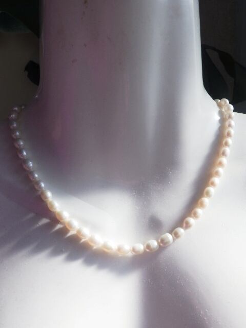 ネックレス部分はオフホワイトの淡水パールネックレス。