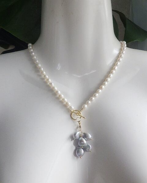 丸みを帯びた淡いシルバーグレーの大きなバロックパールの房はまるで海の恵みの葡萄・・