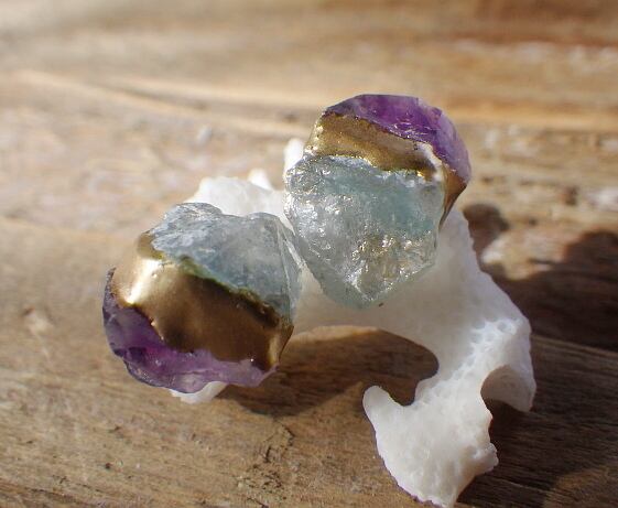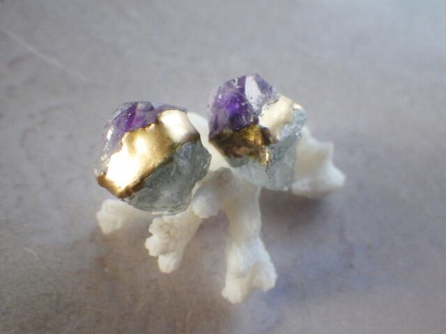 天然石のナチュラルな形をそのまま活かした原石の金継ぎピアスです