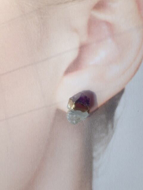 SV925* Raw Amethyst & Celestine 原石の金継ぎピアス☆セレスタイト&アメジスト SV925ピアス