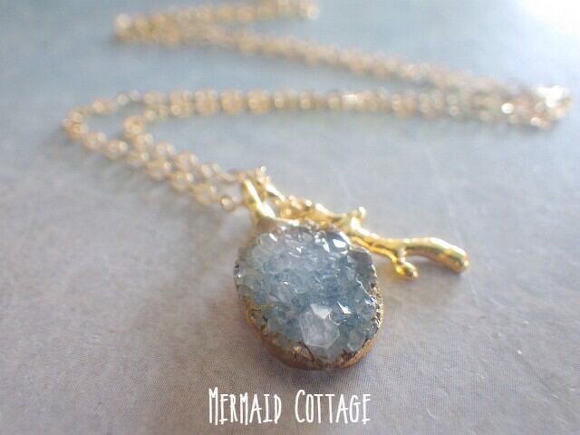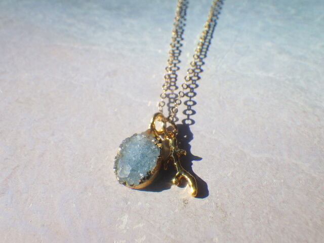 *14kgf* Ocean Druzy &Coral ドゥルージー ネックレス