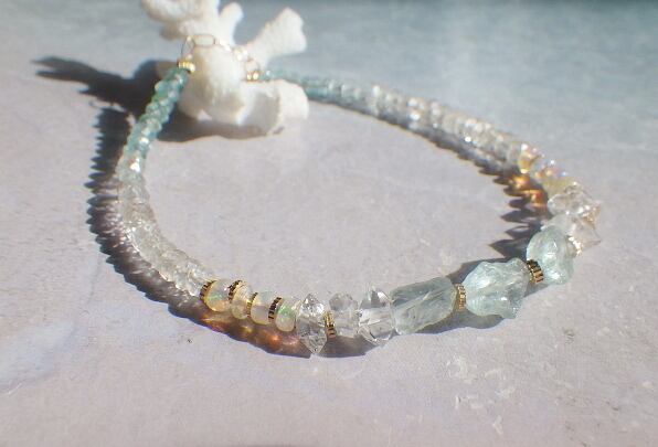 透明感のあるアクアマリン原石とハーキマークウォーツが鉱物感満載!で原石好きにはたまりません