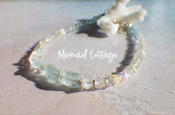海に溶け込みそうな高級感あるプレシャスな総天然石ブレスレットにしました