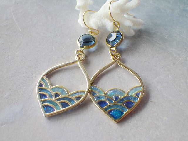 Ocean Wave Earrings ステンドグラス風大波のピアス/イヤリング