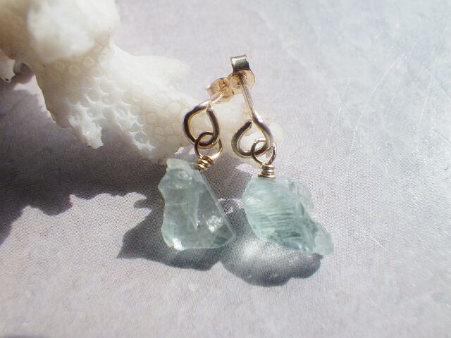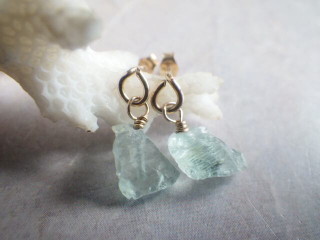 海をすくったようなアクアマリンの原石がとても美しい小さな14kgfのスタッドピアスです